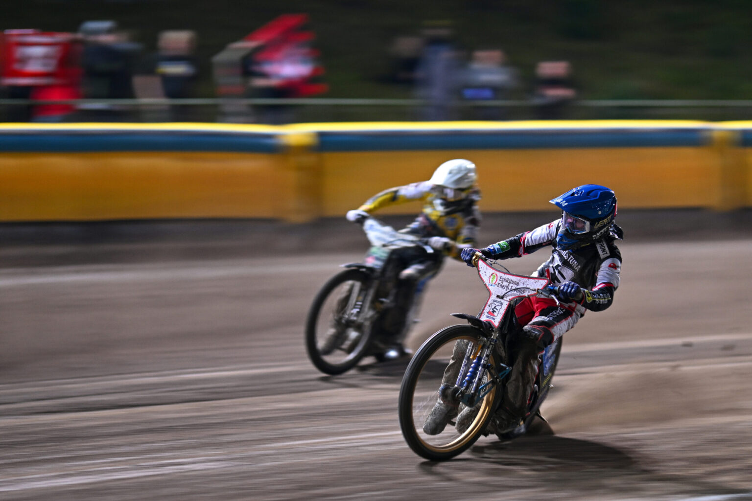 Efter hårt arbete från banpersonalen släpptes tejpen för första heatet runt 19.30 och det var Smederna som körde hem det. En fyrtvåa signerad Gleb Chugunov och Michael Jepsen Jensen spred en god stämning på såväl läktare som i Smedernas sida av depån.